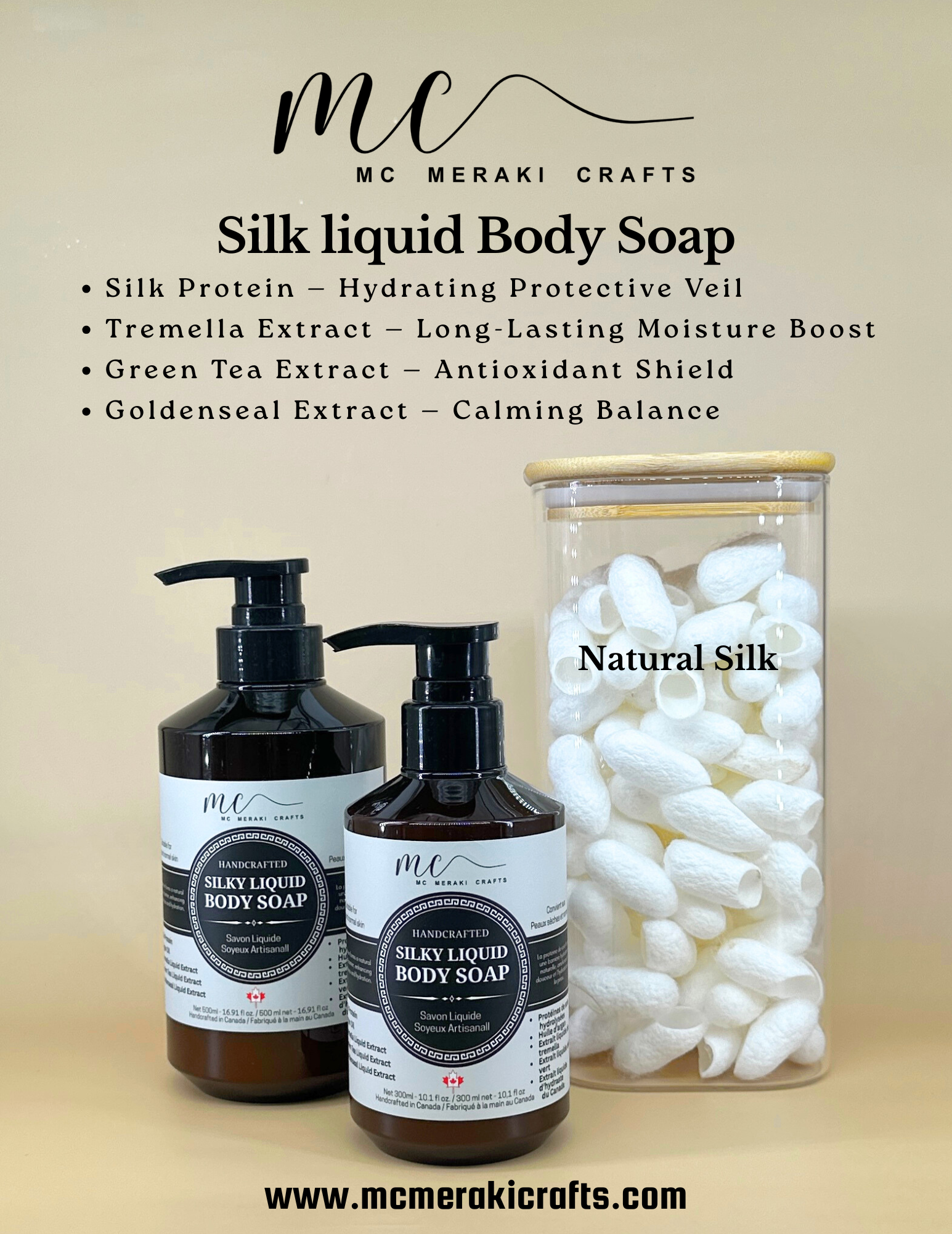 Made with a natural traditional soap-making process, this product is carefully crafted without synthetic foaming agents. Formulated with real silk protein, it creates a delicate protective layer on the skin’s surface to lock in moisture, deeply hydrate, and soothe dry or sensitive skin. Enhanced with Tremella Liquid Extract to replenish hydration, Green Tea Liquid Extract to provide antioxidant protection, and Goldenseal Liquid Extract to calm and balance the skin, it offers gentle cleansing and nourishing care for a healthy, soft, and radiant complexion.